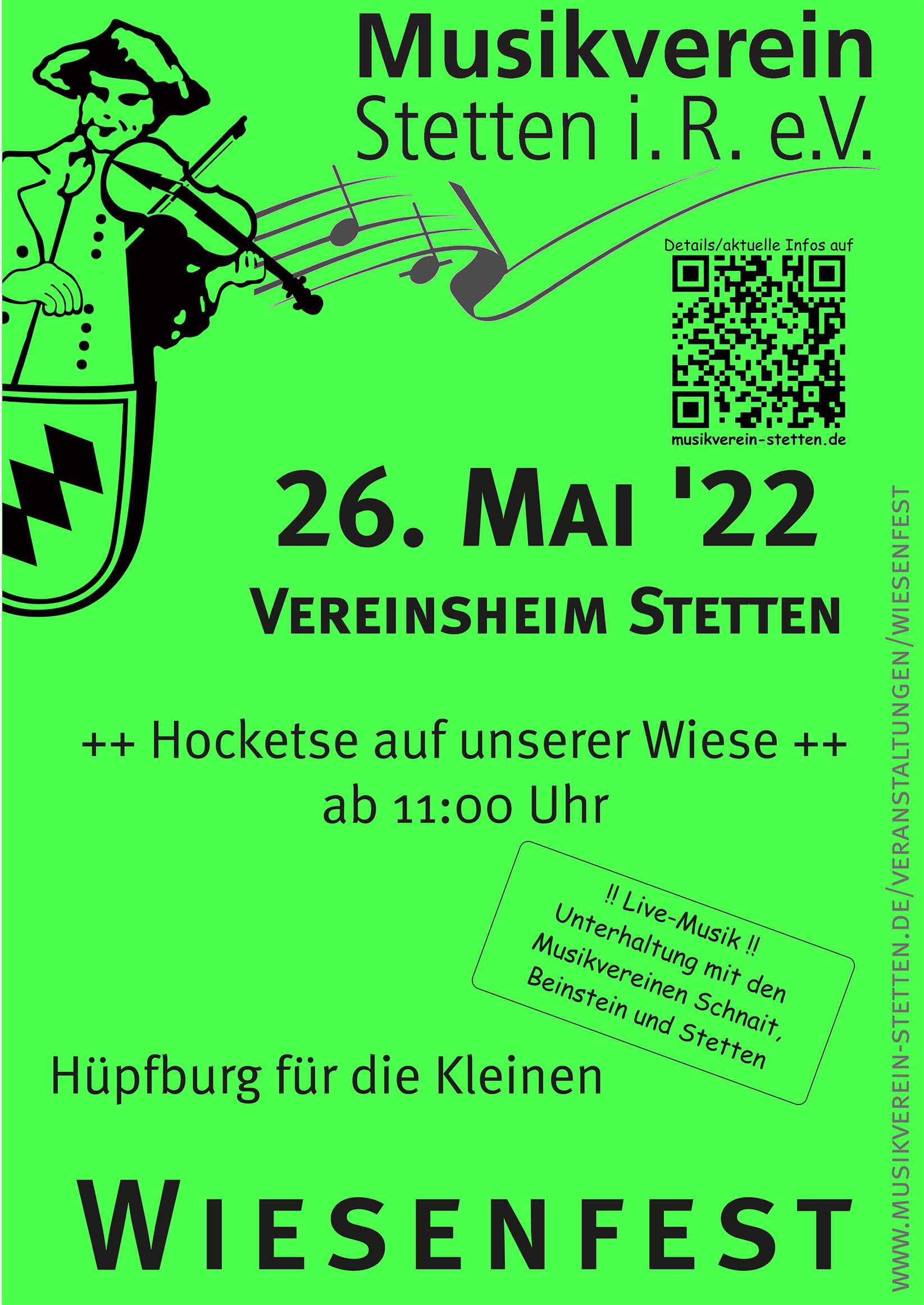 01.05.2025 – 1. Mai Hocketse Der MV Stetten wird Sie beim Weingut Eißele von 11:00 – 14:00 Uhr musikalisch unterhalten. Schauen Sie gerne vorbei! 29.05.2025 - Wiesenfest