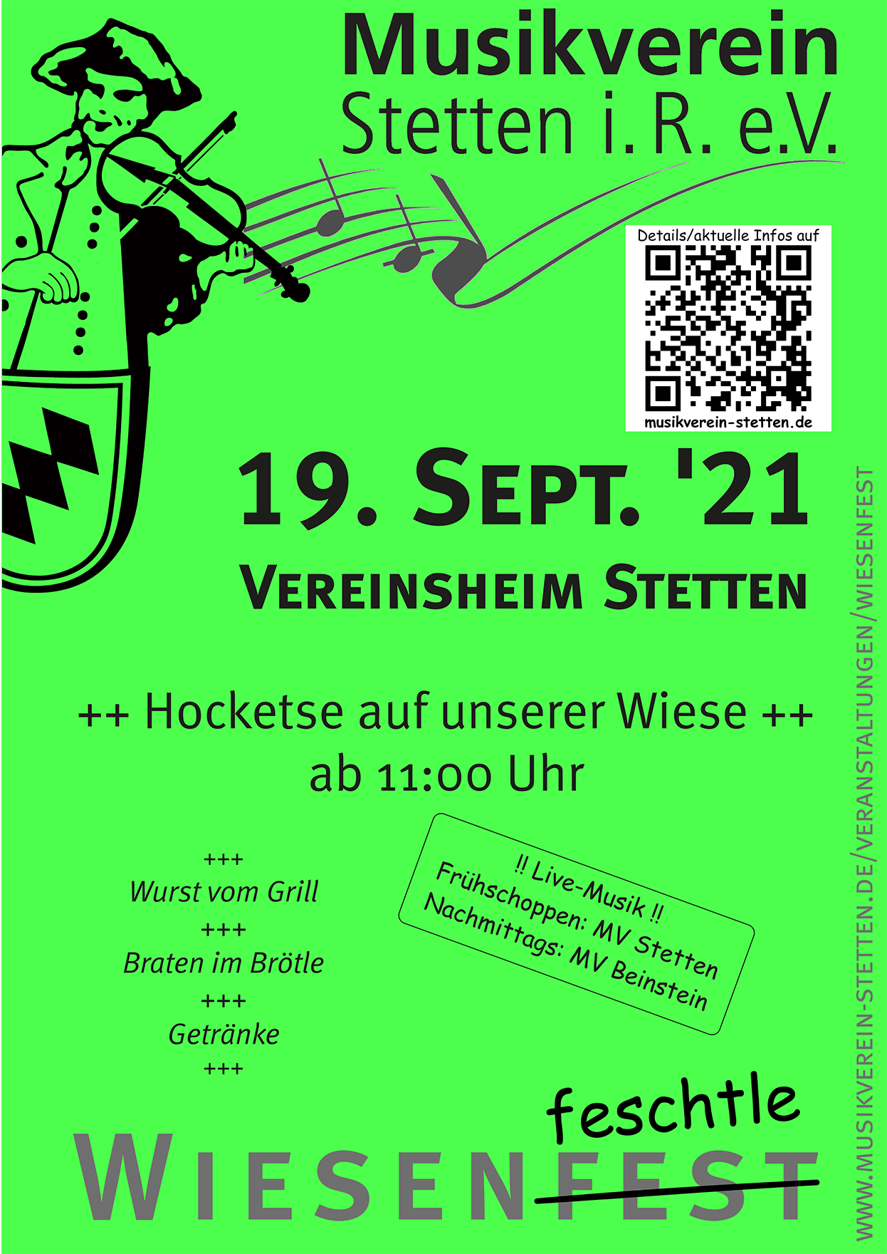 09.09.2021: Blasmusik ist "gebucht": das Orchester des MV Stetten unterhält Sie zum Frühschoppen, ab 15 Uhr dürfen wir unsere Musikfreunde aus Beinstein willkommen heißen!