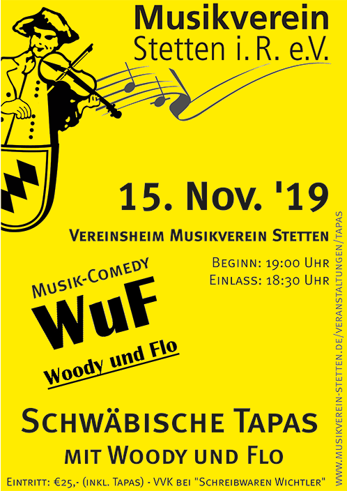 Freuen Sie sich mit uns auf einen kulinarischen Musik-Comedy-Abend im Vereinsheim des Musikverein Stetten.